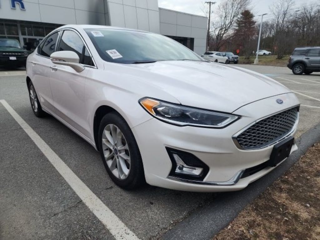Introducing the 2019 Ford Fusion Energi Titanium, a remarkable hybrid sedan that combines exceptional efficiency with a host of premium features. This stunning vehicle, finished in a sleek White exterior, is ready to elevate your driving experience.