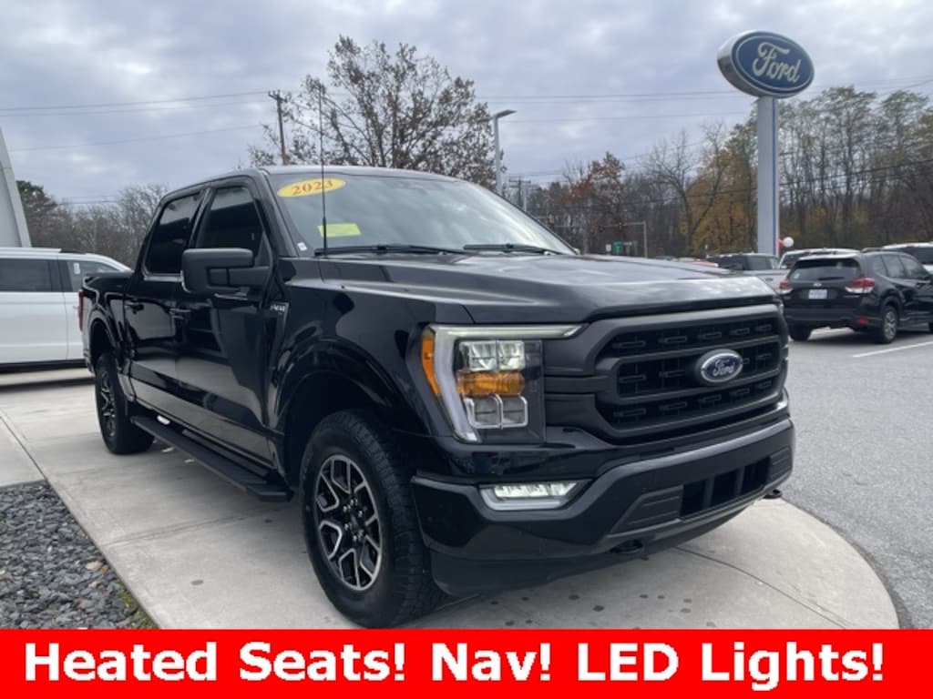 2023 Ford F-150 XLT Ford Gold Certified, 4WD, Heated Seats, Reverse Sensing System, Standard 5.5ft Bed, Blind Spot Information System, Lane Keeping Assist, 1 Owner Clean Carfax, 10-Way Power Driver & Passenger Seats, 3.55 Axle Ratio, 8" Productivity Screen in Instrument Cluster, Accent-Color Step Bars, Alloy wheels, Auto High-beam Headlights, Auto-Dimming Rear-View Mirror, Black 2-Bar Style Grille w/Black Surround/Accents, Body-Color Door & Tailgate Handles, Body-Color Front & Rear Bumpers, Box Side Decals, Brake assist, Class IV Trailer Hitch Receiver, Compass, Delay-off headlights, Dual Zone Electronic Automatic Temperature Control, Electronic Stability Control, Emergency communication system: SYNC 4 911 Assist, Equipment Group 302A High, Exterior Parking Camera Rear, Fog Lamps, Fully automatic headlights, GVWR: 6,470 lbs Payload Package, Heated door mirrors, Heated Front Seats, Intelligent Access w/Push Button Start, LED Reflector Headlamps, LED Sideview Mirror Spotlights, Onboard 400W Outlet, Outside temperature display, Power Glass Heated Sideview Mirrors, Power-Sliding Rear Window, Radio: AM/FM SiriusXM w/360L, Rear Under-Seat Storage, Rear window defroster, Remote Start System w/Remote Tailgate Release, SecuriCode Drivers Side Keyless-Entry Keypad, SYNC 4, SYNC 4 w/Enhanced Voice Recognition, Unique Sport Cloth 40/Console/40 Front-Seats, Variably intermittent wipers, Wheels: 18" 6-Spoke Machined Aluminum, Wrapped Steering Wheel, XLT Sport Appearance Package, Zone Lighting.