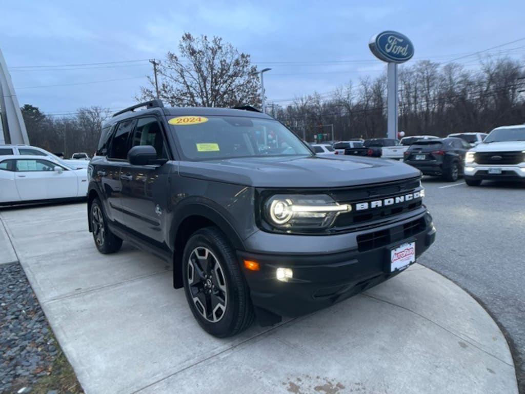 2024 Ford Bronco Sport Outer Banks Ford Gold Certified, Sync 3 w/ Bluetooth, 4WD, Heated Seats, Rear View Back Up Camera, Reverse Sensing System, Navigation System, Heated Steering Wheel, Ford Co - Pilot360, B&O Sound System, 1 Owner Clean Carfax, Well Maintained, 3.80 Axle Ratio, Alloy wheels, AM/FM radio: SiriusXM, AM/FM Stereo, Auto High-beam Headlights, Automatic temperature control, Brake assist, Delay-off headlights, Electronic Stability Control, Emergency communication system: SYNC 3 911 Assist, Equipment Group 300A, Evasive Steering Assist, Fog Lamps, Ford Co-Pilot360 Assist+, Front dual zone A/C, Fully automatic headlights, HD Radio, Heated door mirrors, Heated front seats, Heated steering wheel, Intelligent Adaptive Cruise Control w/Stop & Go, Memory seat, Navigation System, Outside temperature display, Radio data system, Rain sensing wipers, Rear Parking Sensors, Rear window defroster, Rear window wiper, SiriusXM, Speed-Sensitive Wipers, SYNC 3 Communications & Entertainment System, Tech Package, Universal Garage Door Opener (UGDO), Variably intermittent wipers, Voice-Activated Touchscreen Navigation System, Wheels: 18" Ebony Black-Painted Aluminum, Wireless Charging Pad.