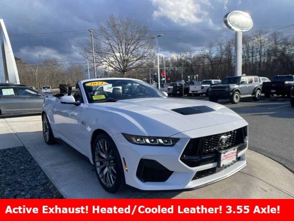 2024 Ford Mustang GT Premium Ford Gold Certified, Heated Seats, Reverse Sensing System, Navigation System, Heated & Cooled Seats, Heated Steering Wheel, Sync4, B&O Sound System, 1 Owner Clean Carfax, Well Maintained, APPLE CAR PLAY ANDROID AUTO, 20" Wheels, 3.55 Limited Slip Rear Axle, Active Anti-Theft System, Active Valve Performance Exhaust, AM/FM radio: SiriusXM with 360L, AM/FM Stereo, Auto High-beam Headlights, Automatic temperature control, B&O Sound System by Bang & Olufsen, Brake assist, Climate Controlled Heated/Cooled Front Seats, Compass, Connected Built-In Navigation, Delay-off headlights, Electronic Stability Control, Emergency communication system: 911 Assist, Equipment Group 401A High Package, Exterior Parking Camera Rear, Ford Co-Pilot360 Assist+, Four wheel independent suspension, Front dual zone A/C, Fully automatic headlights, HD Radio, Heated door mirrors, Heated front seats, Heated steering wheel, Illuminated Door-Sill Scuff Plates, Integrated Turn Signals, Leather-Trimmed Bucket Seats w/Color Accents, Locking Center Console, Memory Driver Seat & Mirrors, Outside temperature display, Pre-Collision Assist w/Automatic Emergency Braking, Radio data system, Rain sensing wipers, Rear Parking Sensors, Rear window defroster, Security Package, SiriusXM w/360L, Speed-sensing steering, Speed-Sensitive Wipers, Spoiler, Sport steering wheel, SYNC 4.0 QNX, Variably intermittent wipers, Ventilated front seats, Wheel Locking Kit, Wheels: 20" x 9" Premium-Painted Aluminum.