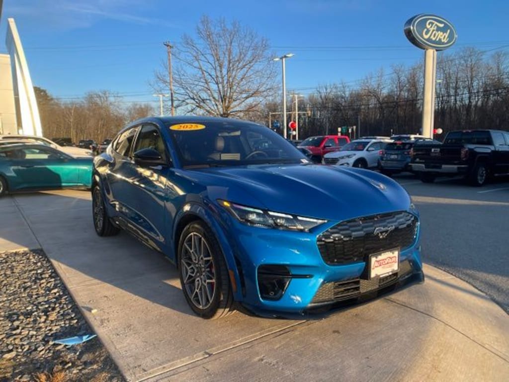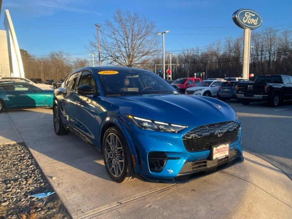 2025 Ford Mustang Mach-E GT Ford Gold Certified, AWD, Heated Seats, Navigation System, Heated Steering Wheel, Sync4, 360 Degree Camera, 1 Owner Clean Carfax, APPLE CAR PLAY ANDROID AUTO, 1st & 2nd Row Floor Liners w/o Carpet Mats, Adaptive suspension, Alloy wheels, AM/FM radio: SiriusXM with 360L, Apple CarPlay/Android Auto, Auto High-beam Headlights, Automatic temperature control, Brake assist, Cargo Area Cover, Cargo Floor Liner, Cellular Connectivity for Audio/Video Streaming, Compass, Delay-off headlights, Electronic Stability Control, Emergency communication system: 911 Assist, Equipment Group 400A Standard Package, Exterior Parking Camera Rear, Ford Connectivity Package (One-Time Purchase), Front dual zone A/C, Fully automatic headlights, Heated door mirrors, Heated front seats, Heated Perforated ActiveX Performance Seats, Heated steering wheel, Interior Protection Package, Memory seat, Navigation system: Connected Navigation, Outside temperature display, Panoramic Fixed-Glass Roof, Power Liftgate, Radio data system, Radio: B&O Sound System by Bang & Olufsen, Rain sensing wipers, Rear window defroster, Rear window wiper, SiriusXM w/360L, Speed-Sensitive Wipers, SYNC 4A w/Enhanced Voice Recognition, Variably intermittent wipers, Wheels: 20" Machined Face Aluminum.