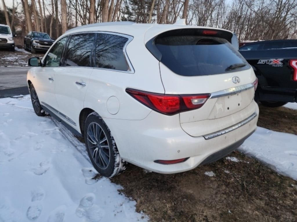 2018 INFINITI QX60 Base Ford Blue Certified, AWD, Rear Heated Seats, Navigation System, Heated Steering Wheel, Power Sunroof, Blind Spot Information System, Lane Keeping Assist, 120V Power Outlet, 2-Way Driver's Seat Power Lumbar Support, 2nd & 3rd Row Moonroof w/Power Rear Sunshade, 5.25 Axle Ratio, 8" Dual Color Monitors, Active Trace Control, Advanced Climate Control System, Alloy wheels, Around View Monitor w/Moving Object Detection, Auto Side Dimming Mirrors, Back-Up Collision Intervention (BCI), Blind Spot Intervention System (BSI), Blind Spot Warning System (BSW), Bose Cabin Surround Sound System, Climate-Controlled Front Seats, Cross Bars, Delay-off headlights, Deluxe Technology Package, Distance Control Assist, Dual Occupant Memory System, ECO Pedal, Enhanced Intelligent Key Memory, Entry & Exit Assist, Fog Lamps, Forward Emergency Braking, Front & Rear Sonar Sensors, Front dual zone A/C, Front Pre-Crash Seatbelts, Fully automatic headlights, Heated 2nd-Row Seats, Heated Front Seats, Heated front seats, Heated Steering Wheel, High Beam Assist, High intensity discharge headlights: Bi-Xenon, Illuminated Kick Plates (IKP), INFINITI Navigation, Intelligent Cruise Control, Lane Departure Prevention (LDP), Lane Departure Warning System, Maple Interior Accents, Motion Activated Liftgate, Outside Mirrors w/Reverse Tilt-Down Feature, Outside temperature display, Power moonroof, Power Return 3rd Row Seat Back, Predictive Forward Collision Warning (PFCW), Premium Package, Premium Plus Package, Radio: AM/FM/CD/DVD w/MP3 Playback Capability, Rain-Sensing Front Windshield Wipers, Rear Bumper Protector, Rear window defroster, Rear window wiper, Remote Engine Start, Roof Rails, Single In-Dash CD/DVD Player, Single USB Port, Speed-Sensitive Wipers, Theater Package, Variably intermittent wipers, Voice Recognition For Navigation, Wheels: 20" 15-Spoke Aluminum-Alloy, Wireless Headphones (2).