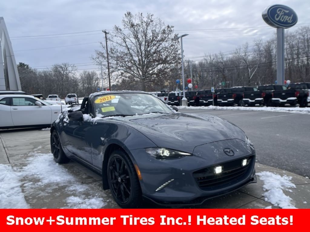 2021 Mazda MX-5 Miata Club Ford Blue Certified, Heated Seats, Rear View Back Up Camera, Blind Spot Information System, Lane Keeping Assist, 1 Owner Clean Carfax, Alloy wheels, Appearance Package, AppLink/Apple CarPlay and Android Auto, Brake assist, Brilliant Black Rear Bumper Skirt (PIO), Electronic Stability Control, Emergency communication system: MAZDA CONNECT, Exterior Parking Camera Rear, Glass rear window, Heated Front Bucket Seats, Heated front seats, MAZDA CONNECT Infotainment System, Outside temperature display, Panic alarm, Radio data system, Radio: Bose Audio System w/AudioPilot, Side Sill Extensions, Variably intermittent wipers, Wheel Locks, Wheels: 17" x 7" Metallic Black Aluminum Alloy.